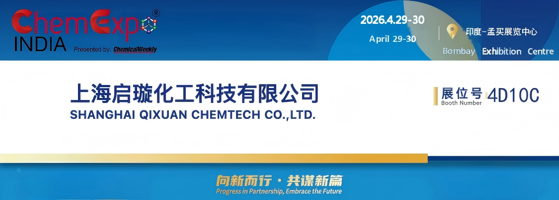 The exhibition season is approaching, and we sincerely invite our industry peers. Shanghai Qixuan Chemical Technology Co., Ltd. warmly welcomes professionals, buyers, and R&D experts from the global fine chemical industry to visit Booth 4D10C in Hall 4 of the Mumbai Exhibition Centre, India, from April 29 to 30,2026. Join us for face-to-face discussions to explore emerging industry trends and jointly build a future of win-win cooperation!